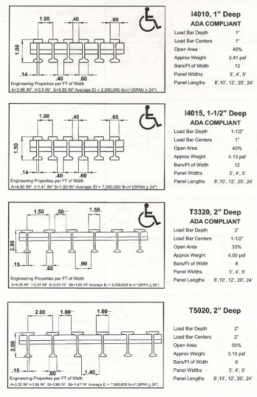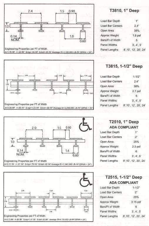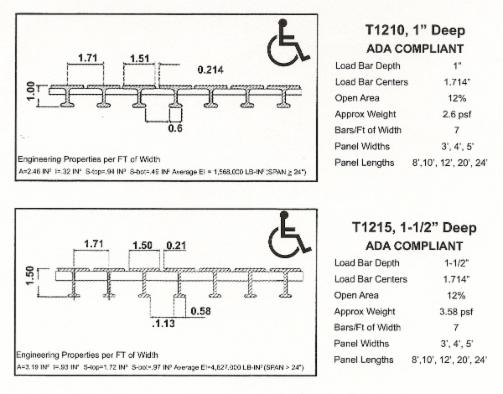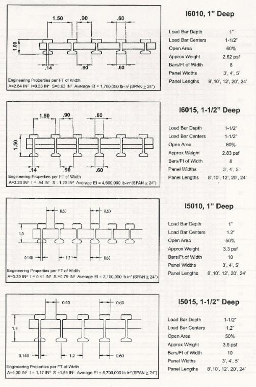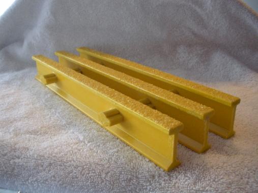Pultruded Fiberglass Grating is constructed from individual components that are assembled to create a grating panel. The primary component is called the "load bar" and is available in either an "I" bar profile or a "T" bar profile. Typically the "I" bar grating is used for industrial applications because of its high strength characteristics. The "T" bar profile is more commonly used for pedestrian walkways because of its wider surface profile. The second component of pultruded grating is the "tie bar". The "tie bars" hold the load bars in position and are typically spaced at 6" or 12" intervals.